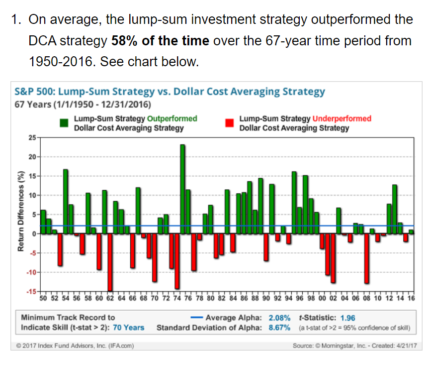 DCA strategy is best employed during the volatile market or bear market while lump sum investing ...