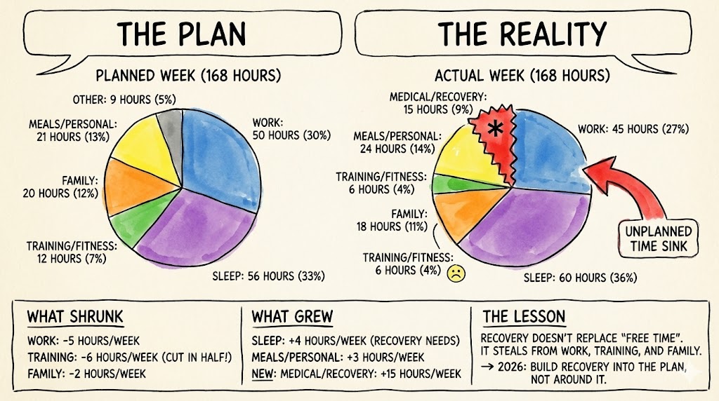 Example from my year: My wife showed up every single time. My clients were understanding when I needed to reschedule. My team carried work I couldn’t handle. Those relationships matter. I’m structuring 2026 to protect time with them.